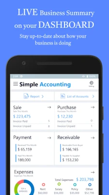அன்றாட வணிக நடவடிக்கைகளை Simple Accounting Bookkeeping இன்னும் சீரமைக்கிறது. தனிப்பயனாக்கக்கூடிய விலைப்பட்டியல் (இன்வாய்ஸ்) வார்ப்புருக்கள், உங்கள் லோகோ மற்றும் கையொப்பத்துடன், பில்களுக்கு கெடு தேதிகளை நிர்ணயிக்கும் வசதியுடன் வழங்கப்படுகின்றன. பகுதி கட்டணங்கள் அல்லது முன்கூட்டியே பெறும் கட்டணங்களையும் பதிவு செய்யலாம், மேலும் இவை உங்கள் வங்கி மற்றும் பண இருப்புக்களை தானாகவே புதுப்பிக்கும். சிறு சில்லறை செலவுகள் முதல் பெரிய வரவு செலவுகள் வரை அனைத்தையும் எளிதாக நிர்வகிக்கலாம். இறுதியாக, உங்கள் விலைமதிப்பற்ற தரவை பாதுகாப்பாக வைத்திருக்க, டிராப்பாக்ஸ் மற்றும் கூகிள் டிரைவ் மூலம் தரவு காப்புப்பிரதி எடுக்கும் வசதி Simple Accounting Bookkeeping இல் உள்ளது. ஒவ்வொரு கணக்கின் முழுமையான கணக்கு புத்தகத்தையும் (Ledger) காணலாம், மேலும் சிக்கலான பரிவர்த்தனைகளை இரட்டை நுழைவு கணக்குப்பதிவு முறையைப் பயன்படுத்திப் பதிவுசெய்யவும் இது உங்களுக்கு வாய்ப்பளிக்கிறது.
