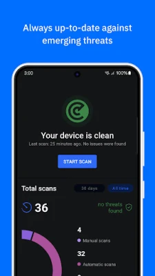 இந்த செயலியின் வலுவான வைரஸ் தடுப்பு இயந்திரம், உங்கள் சாதனத்தை மால்வேர், ஆட்வேர் மற்றும் ரான்சம்வேர் தாக்குதல்களிலிருந்து 100% துல்லியத்துடன் பாதுகாக்கிறது. அதே சமயம், தனித்துவமான அழைப்பு தடுப்பு அம்சம், ஸ்பேம் மற்றும் மோசடி அழைப்புகளை உங்கள் திரையை அடைவதற்கு முன்பே தானாகவே வடிகட்டி, சமூகத்தின் கூட்டு நுண்ணறிவால் தொடர்ந்து மேம்படுத்தப்படுகிறது. மேலும், நிகழ்நேர செயலி நடத்தை கண்காணிப்பு (App Anomaly Detection) மூலம், அறியப்படாத அச்சுறுத்தல்கள் உடனடியாக அடையாளம் காணப்பட்டு தடுக்கப்படுகின்றன. இணையப் பாதுகாப்பு அம்சம், ஃபிஷிங் மற்றும் மோசடி வலைத்தளங்களிலிருந்து உங்கள் தனிப்பட்ட மற்றும் நிதித் தகவல்களைப் பாதுகாக்க உறுதிபூண்டுள்ளது.