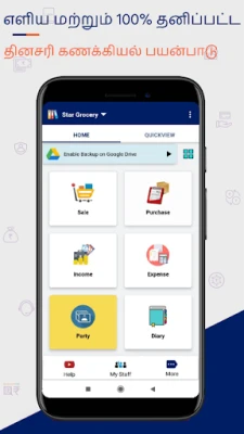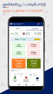 BuKu, சரக்கு மேலாண்மை மற்றும் பில்லிங் சேவைகளில் சிறந்து விளங்குகிறது. விலைப்பட்டியல்கள், புரோஃபார்மா மற்றும் மேற்கோள்களை மிக எளிதாக உருவாக்கலாம், அவற்றை அச்சிடலாம் அல்லது வாட்ஸ்அப் மூலம் வாடிக்கையாளர்களுடன் பகிர்ந்து கொள்ளலாம். விரிவான CRM அம்சங்கள் மூலம் உங்கள் வாடிக்கையாளர் தகவல்கள், கடன் வரம்புகள் மற்றும் பரிவர்த்தனைகளைச் சரிபார்த்து நிர்வகிக்கலாம். ஊழியர்களின் வருகை, சம்பளம் மற்றும் ஊதியப்பட்டியல் நிர்வாகமும் BuKu-வின் உள்ளமைக்கப்பட்ட சிறப்பு அம்சங்களில் அடங்கும். இது 20க்கும் மேற்பட்ட மொழிகளில் இயங்குவதுடன், 15க்கும் மேற்பட்ட விரிவான நிதி அறிக்கைகளை வழங்கி, உங்கள் வணிகத்தின் நிதி நிலை குறித்த தெளிவான கண்ணோட்டத்தை அளிக்கிறது. உங்கள் மொபைல் ஃபோனை பில்லிங் POS அல்லது பணம் வசூலிக்கும் சாதனமாக மாற்றும் பயோமெட்ரிக் மற்றும் வெப்ப அச்சுப்பொறி ஒருங்கிணைப்பு வசதியுடன், உங்கள் வணிக செயல்பாடுகளை மேலும் டிஜிட்டலாக்கலாம்.