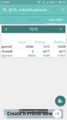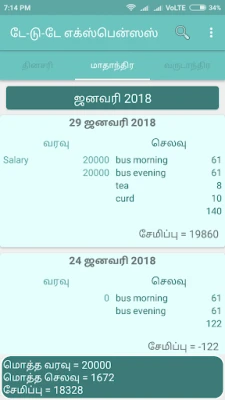உங்கள் தினசரி வரவு செலவுகளை எளிதாகப் பதிவு செய்ய ஒரு சிறந்த வழி. மாதாந்திர மற்றும் வருடாந்திர கணக்குகளைச் சுலபமாகப் பார்த்து, உங்கள் நிதியை சிறப்பாகத் திட்டமிடவும் நிர்வகிக்கவும் இந்த கருவி உங்களுக்கு உதவும்.