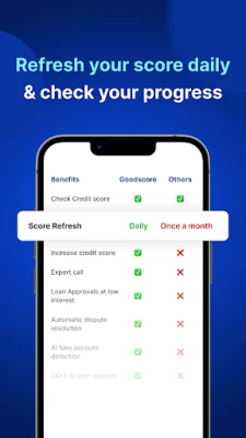 GoodScore என்பது உங்கள் கிரெடிட் ஸ்கோரை மேம்படுத்த உதவும் ஒரு செயலி. உங்கள் CRIF ஸ்கோரை சரிபார்ப்பதற்கும் மேலாக, நல்ல கிரெடிட் ஸ்கோரை உருவாக்க இது வழிகாட்டுகிறது. சிறந்த நிதி நிலைத்தன்மை மற்றும் நிலையை அடைய GoodScore உங்களுக்கு துணைபுரியும்.