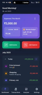 உங்கள் நிதியைக் கட்டுப்படுத்தவும், செலவு மற்றும் வருமானத்தைக் கண்காணிக்கவும் இந்த ஆப் எளிமையையும் தெளிவையும் தருகிறது. இதன் நேர்த்தியான வடிவமைப்பு மற்றும் சக்திவாய்ந்த பகுப்பாய்வு கருவிகள் மூலம், உங்கள் பொருளாதார நிலைமையை சிரமமின்றி புரிந்து கொள்ளலாம்.