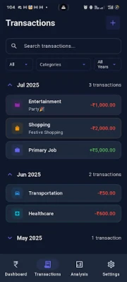 உங்களுக்குத் தேவையான பரிவர்த்தனையை விரைவாகக் கண்டறிய, தேதி, வகை அல்லது தொகை அடிப்படையில் தேடல் மற்றும் வடிகட்டுதல் வசதிகள் உள்ளன. காப்பகப்படுத்துதல், பகிர்தல் அல்லது மேலதிக ஆய்விற்காக PDF அல்லது Excel அறிக்கைகளை எளிதாக உருவாக்கலாம். உங்கள் சாதனத்தின் தீமிற்கு ஏற்ப மாறும் ஒளி மற்றும் இருண்ட முறைகள், எந்த நேரத்திலும் கண்களுக்கு இதமான அனுபவத்தை உறுதி செய்கின்றன. விளம்பரமற்ற நிதி மேலாண்மை, வரவுசெலவுத் திட்டங்களைக் கண்காணிக்கும் மாணவர்கள், குடும்பங்கள் மற்றும் தனிநபர்கள், தனிப்பயனாக்கக்கூடிய பகுப்பாய்வுகளை விரும்புவோர் மற்றும் தெளிவான, உடனடி நிதி நுண்ணறிவுகளை எதிர்பார்க்கும் குறைந்தபட்ச வடிவமைப்பு ஆர்வலர்கள் என அனைவருக்கும் இந்த செயலி ஓர் அத்தியாவசிய கருவியாகும்.