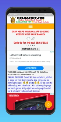 KolkataFF.fun அதிகாரப்பூர்வ பயன்பாடு. கொல்கத்தா ஃபடாஃபட் விளையாட்டு முடிவுகளைப் பெறுவதற்கு இதுவே சிறந்த இடம். இன்றைய கொல்கத்தா ஃபடாஃபட் முடிவுகளை முதலில் தெரிந்து கொள்ளுங்கள். நேரலை ஃபடாஃபட் விளக்கப்படங்கள், பட்டி மற்றும் சிங்கிள் போன்ற அனைத்து விவரங்களும் இந்த செயலியில் தெளிவாகக் கிடைக்கும்.