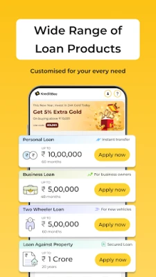 தனிநபர் கடன்களுக்கு அப்பால், கிரெடிட்பீ பலதரப்பட்ட நிதித் தீர்வுகளை வழங்குகிறது. உங்களின் வணிக வளர்ச்சிக்கான கடன்கள், இருசக்கர வாகனக் கனவுகளை நிறைவேற்றும் கடன்கள், சொத்தின் மீதான கடன்கள் மற்றும் 24K தங்கத்தை ஆன்லைனில் வாங்குதல் அல்லது விற்பனை செய்தல் என பல வசதிகள் உள்ளன. இந்தியக் குடிமகனாக, 21 வயதுக்கு மேற்பட்டவராக, நிலையான மாத வருமானம் கொண்டவராக இருந்தால், நீங்கள் கிரெடிட்பீயின் பலன்களைப் பெறத் தகுதி பெறுவீர்கள். திருமணம், கல்வி, அவசர மருத்துவச் செலவுகள் அல்லது கடன் ஒருங்கிணைப்பு என எந்தத் தேவைக்கும் கிரெடிட்பீ ஒரு விரிவான நிதித் துணையாக உள்ளது, உங்கள் வாழ்க்கை இலக்குகளை அடைய உதவுகிறது.