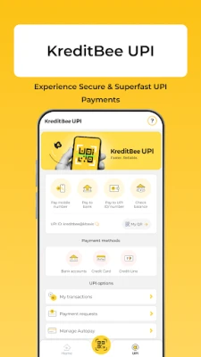 கிரெடிட்பீயில் கடன் பெறுவது ஒரு டிஜிட்டல் அனுபவம். முற்றிலும் தொந்தரவில்லாத, காகிதமற்ற செயல்முறைகள் மூலம் சில நிமிடங்களில் ஒப்புதல் பெற முடியும். முழுமையான வெளிப்படைத்தன்மையுடன், மறைக்கப்பட்ட கட்டணங்கள் எதுவும் இல்லாமல், நீங்கள் எதிர்பார்த்த கடனை எப்போது வேண்டுமானாலும், எங்கிருந்தாலும் பெறலாம். அத்துடன், கிரெடிட்பீ UPI மூலம் வேகமான, நம்பகமான மற்றும் பாதுகாப்பான பணப் பரிமாற்றங்களை அனுபவிக்கலாம். உங்கள் வங்கிக் கணக்கை இணைப்பதன் மூலம் UPI ID அமைத்து, ஆன்லைனிலும் ஆஃப்லைனிலும் தடையின்றி ஷாப்பிங் செய்யலாம், பணத்தை உடனடியாக அனுப்பலாம் மற்றும் பெறலாம். RBI-பதிவு செய்யப்பட்ட முன்னணி நிதி நிறுவனங்கள் மற்றும் வங்கிகளுடன் இணைந்து செயல்படுவதால், உங்கள் நிதிப் பாதுகாப்பிற்கு கிரெடிட்பீ முழு உத்தரவாதம் அளிக்கிறது.