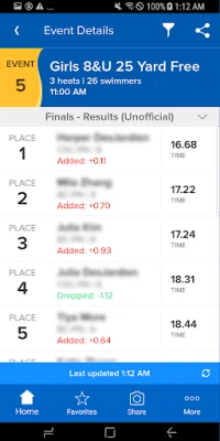 Meet Mobile-ல் விரிவான போட்டி முடிவுகளைப் பெறுவதற்கு, உள்ளடக்கத்தில் சந்தா சேவைகள் உள்ளன. இந்தச் சந்தா, HY-TEK Meet Manager மென்பொருளின் சமீபத்திய பதிப்பைப் பயன்படுத்தி போட்டி நடத்துநர்கள் வெளியிடும் நீச்சல் வீரர்களின் நேரங்கள், பிரிவுகள், மதிப்பெண்கள் மற்றும் பலவற்றை அணுக உதவுகிறது. சில சந்தர்ப்பங்களில், ஹீட் ஷீட்களுக்கு போட்டி நடத்துநர்களால் தனிக் கட்டணம் நிர்ணயிக்கப்படலாம் என்பதை நினைவில் கொள்க. HY-TEK மற்றும் ACTIVE Network வழங்கும் Meet Mobile செயலி, உங்கள் நீச்சல் அனுபவத்தை மேம்படுத்துகிறது, உங்கள் தனியுரிமைக்கும் தரவுப் பாதுகாப்பிற்கும் முக்கியத்துவம் அளிக்கிறது.
