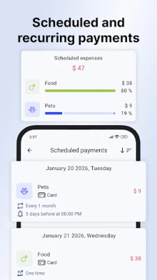 "Mony: Budget & Expense Tracker" ஒரு விரிவான பண மேலாளர் மற்றும் நிதித் திட்டமிடல் செயலியாகும். இதன் மூலம், நீங்கள் பல்வேறு நிதி இலக்குகளுக்கான பட்ஜெட்களை உருவாக்கலாம் – தினசரி, மாதாந்திர அல்லது வருடாந்திர வரம்புகளை நிர்ணயித்துக் கொள்ளலாம். உங்கள் செலவினங்களை விரைவாகப் பதிவுசெய்ய, முன்னரே வரையறுக்கப்பட்ட வகைகளைப் பயன்படுத்தலாம், அல்லது உங்கள் விருப்பப்படி தனிப்பயனாக்கலாம். பல நாணயங்கள் மற்றும் கணக்குகளுக்கான ஆதரவுடன், உங்கள் நிதிப் படம் எப்போதும் தெளிவாக இருக்கும், எந்தத் தொகையும் உங்கள் கண்களிலிருந்து மறையாது.