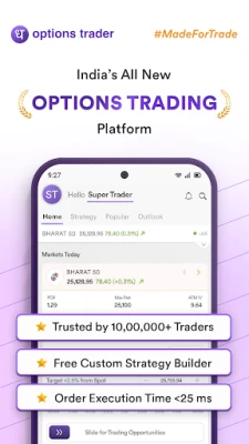 Options Trader: FnO & Stocks என்பது தீவிர FnO வர்த்தகர்களுக்காக வடிவமைக்கப்பட்ட பிரத்யேகத் தளமாகும். இது இந்திய FnO வர்த்தகர்களின் உள்ளீடுகளுடன் உருவாக்கப்பட்டு, துல்லியமான, வேகமான, ஒழுக்கமான வர்த்தக அனுபவத்தை வழங்குகிறது. DEXT இன்ஜின் மற்றும் குவாண்ட் மோட் போன்ற புதுமையான அம்சங்களுடன், இது நிகரற்ற வேகம் மற்றும் செயல்திறனை உறுதி செய்கிறது.