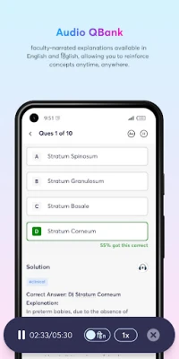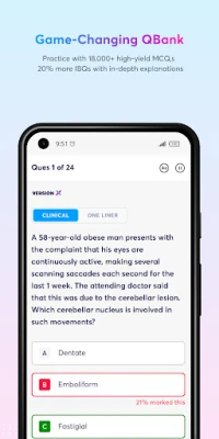 PrepLadder-ஐ ஏன் தேர்வு செய்ய வேண்டும்? "Version X" பதிப்பின் அம்சங்கள், நீங்கள் சிறப்பாகப் படிக்கவும், படித்ததை நீண்ட காலம் நினைவில் வைத்திருக்கவும் உதவுகின்றன: 15% குறைவான நேரத்துடன் கூடிய புத்திசாலித்தனமான வீடியோ விரிவுரைகள், 3D மாதிரிகள், அனிமேஷன்கள் மற்றும் நிஜ நோயாளி உதாரணங்களுடன் ஆழமான கருத்துத் தெளிவை வழங்குகின்றன. 18,000-க்கும் மேற்பட்ட, அதிக பலனளிக்கும் பல்தேர்வு வினாக்கள், 20% கூடுதல் பட அடிப்படையிலான வினாக்கள் மற்றும் நிபுணர்களால் உருவாக்கப்பட்ட விளக்கங்களுடன் ஒரு புரட்சிகரமான வினா வங்கியை அனுபவிக்கலாம். மேலும், பயணத்தின்போது கற்றுக்கொள்ள, பேராசிரியர்களால் விவரிக்கப்பட்ட ஆடியோ வினா வங்கியும் உள்ளது. வீடியோ விரிவுரைகளுடன் ஒத்திசைக்கப்பட்ட, HD படங்கள், மைண்ட் மேப்கள் மற்றும் ஃப்ளோசார்டுகளுடன் கூடிய ஒழுங்கமைக்கப்பட்ட குறிப்புகள், விரைவான திருத்தத்திற்கு உதவும். கடைசி நிமிடத் திருத்தத்தை எளிதாக்கும் வகையில், முக்கியத் தகவல்களைச் சுருக்கிய சார்ட் தொகுப்புகளும் கிடைக்கின்றன. நிஜத் தேர்வுகளைப் போன்ற ஒரு விரிவான தேர்வுத் தொடர், உங்கள் செயல்திறனை பகுப்பாய்வு செய்து, தேர்வுத் தயாரிப்பு உத்தியைச் செம்மைப்படுத்த உதவுகிறது.
